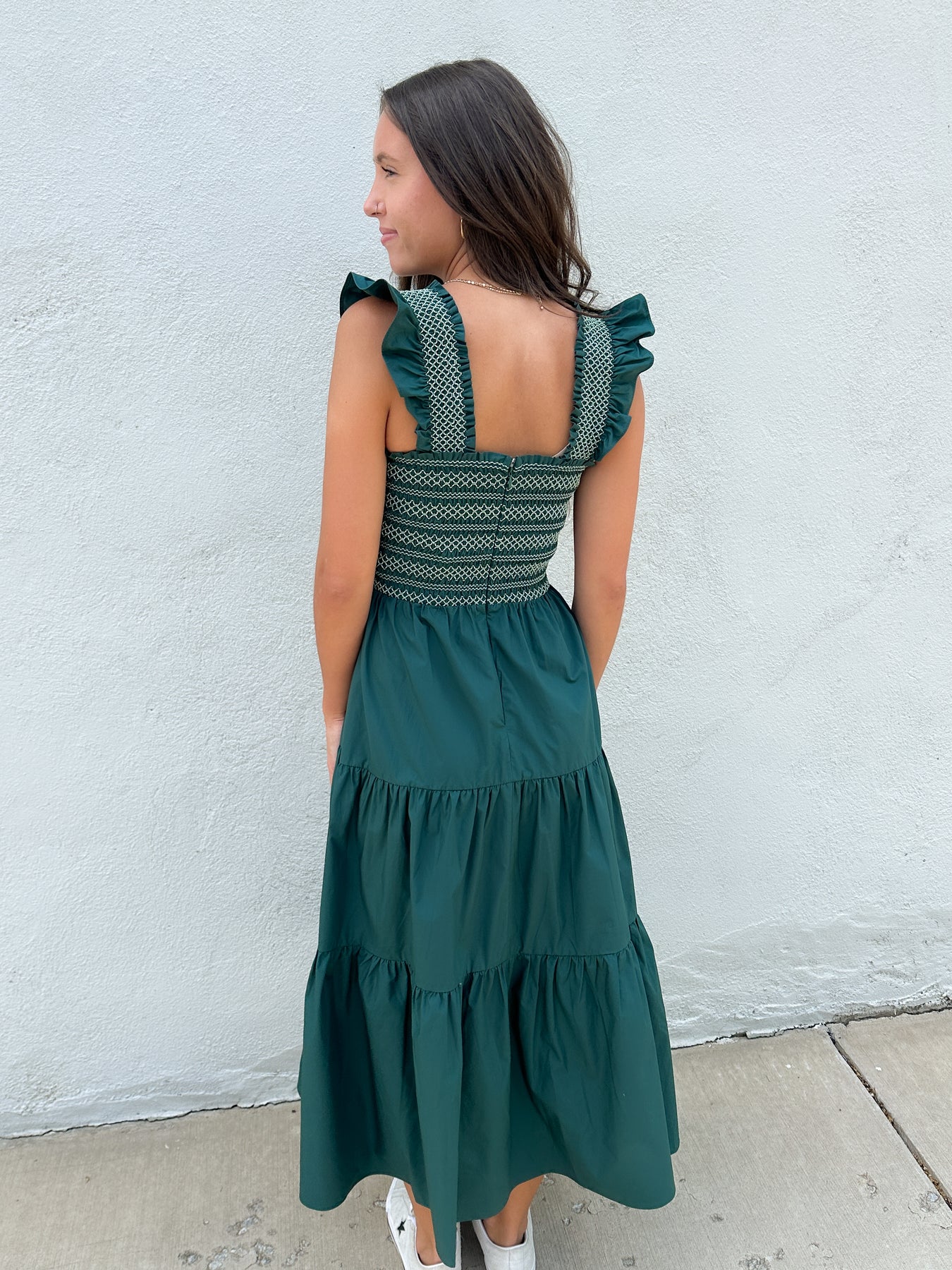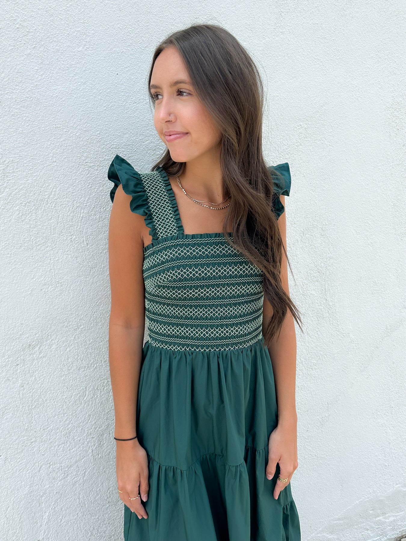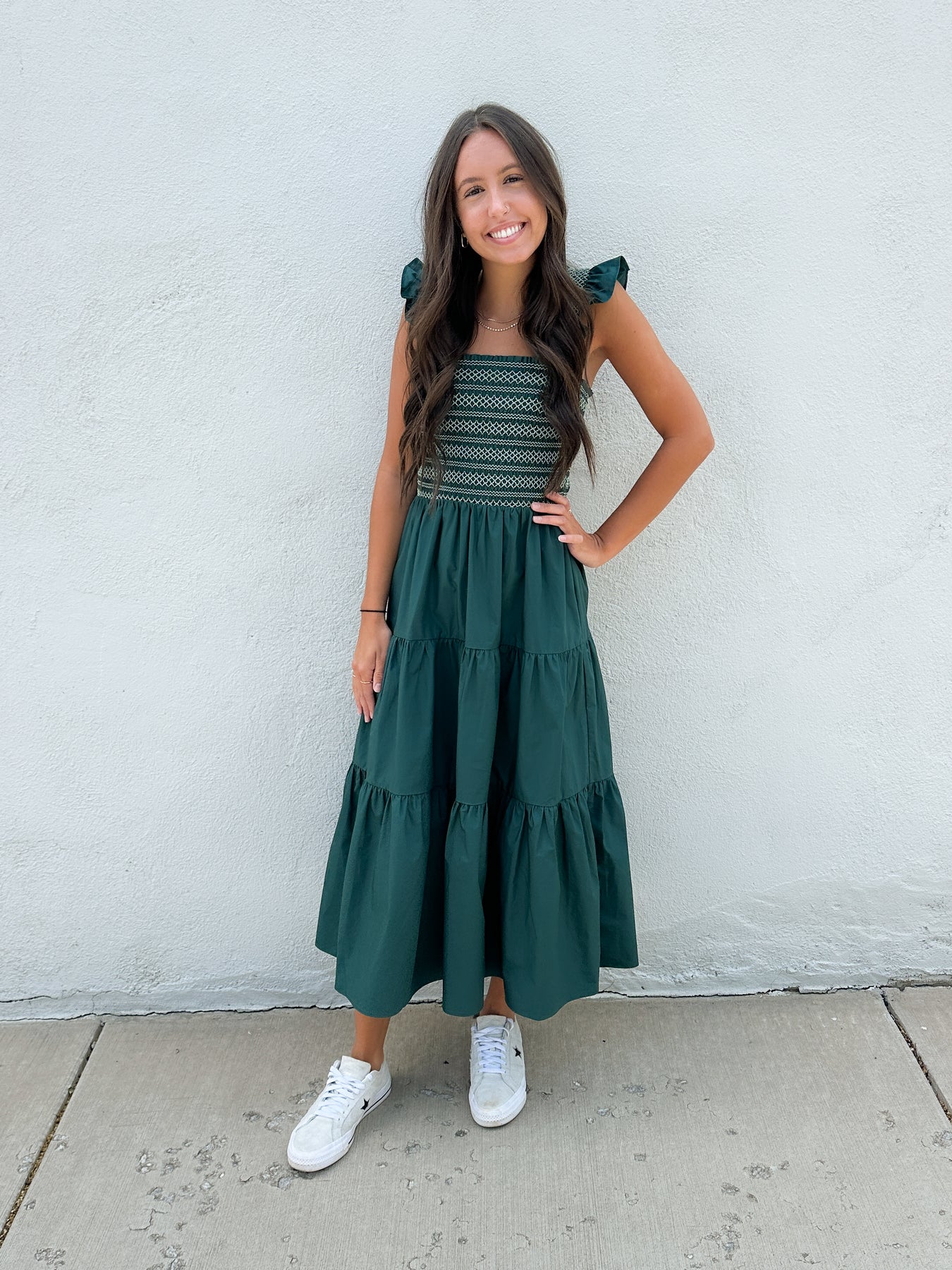 It’s easy to love a midi dress, especially one this great! With smocking on the bodice and the wide straps, this tiered poplin midi dress is bra friendly and so flattering!