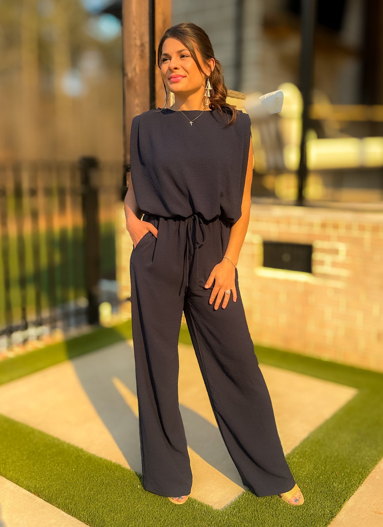 Back again for this season! One of our most popular pants in navy blue. These straight leg; drawstring pants are the perfect combination of dressed up casual. They have a matching top (sold separately.) Pair them together or with another one of your favorite tops.