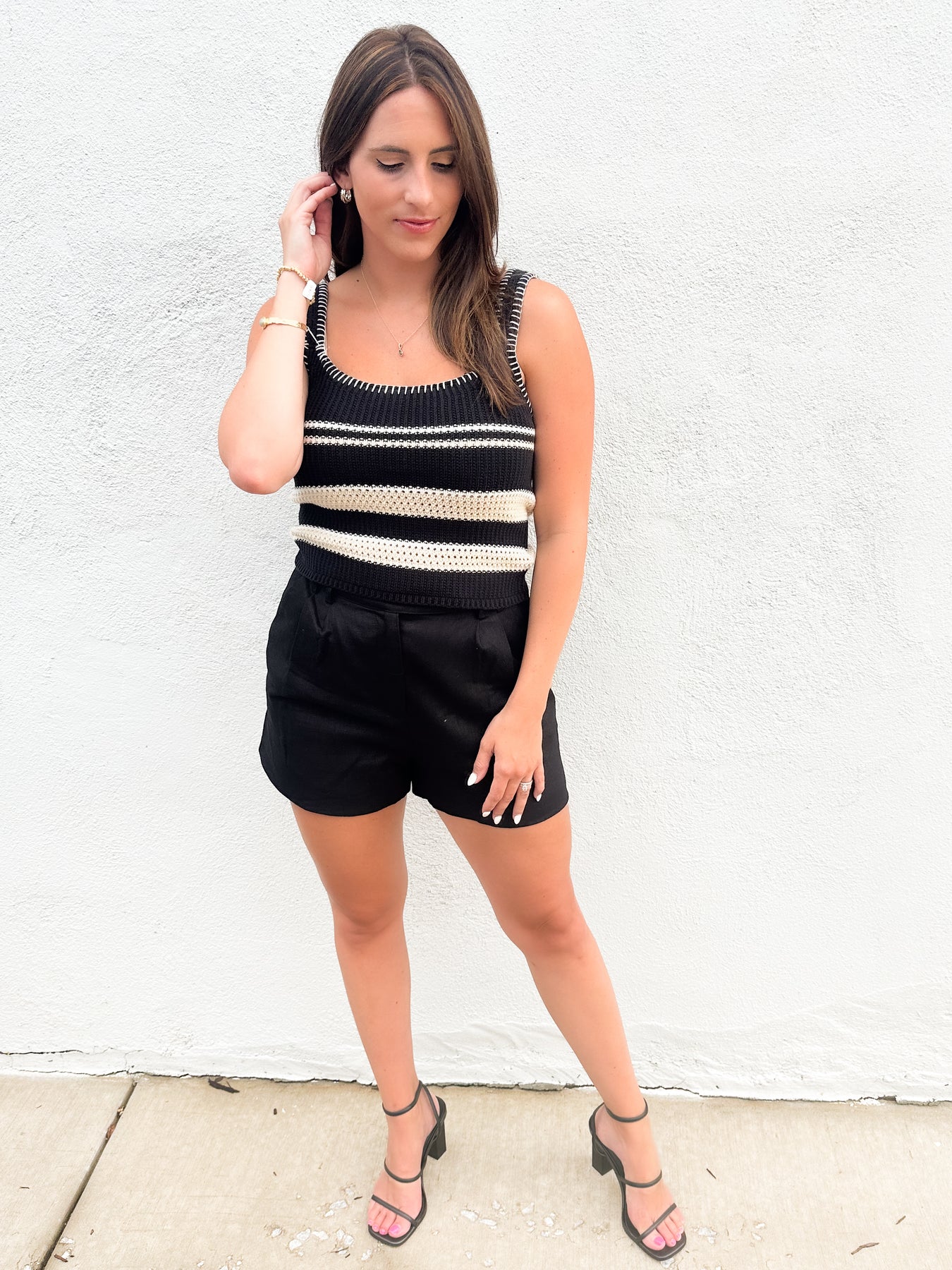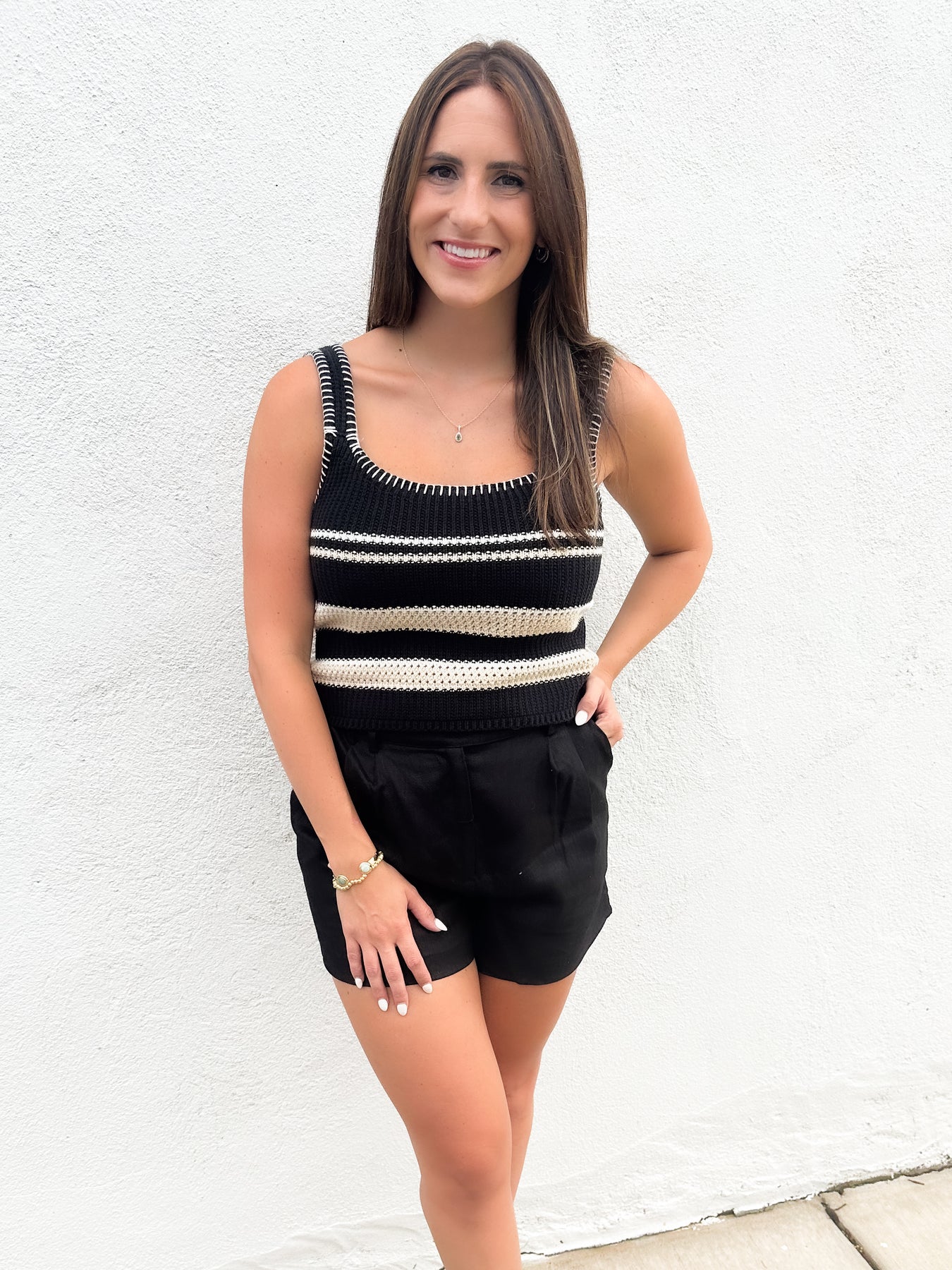 Neutral colors in a crochet knit, this tank is such a great piece. Scoop neck with medium width straps.