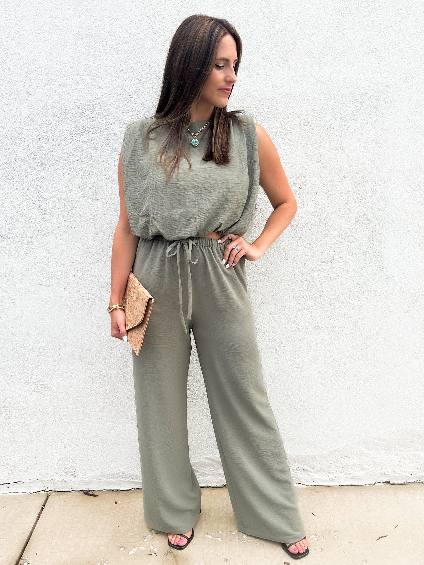 Sleeveless top with shoulder pads and an elastic waistband. This top is a match to the Serafina Pants (sold separately.) It also is a great piece to pair with other bottoms. Try it with your favorite jeans.