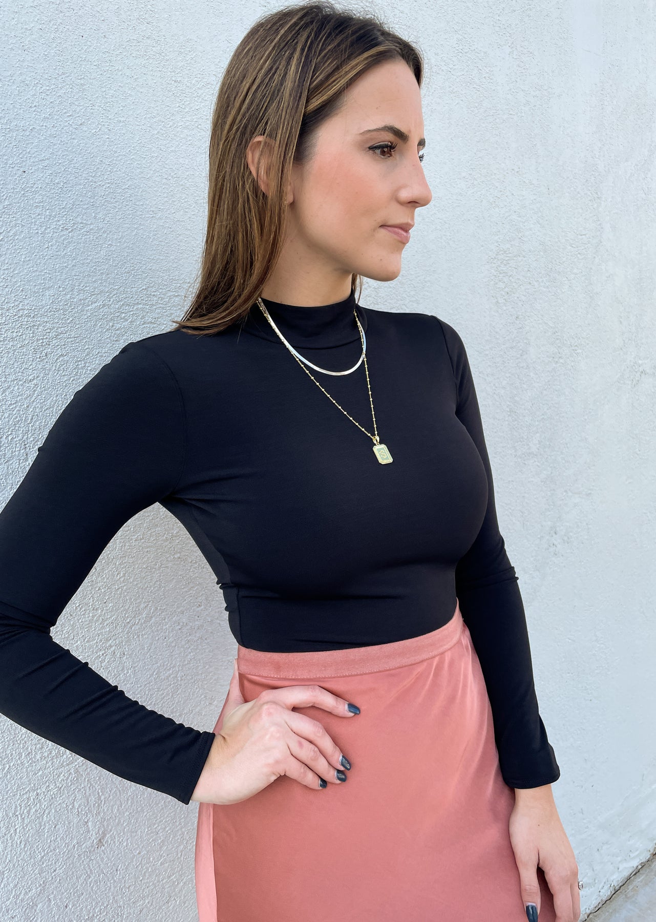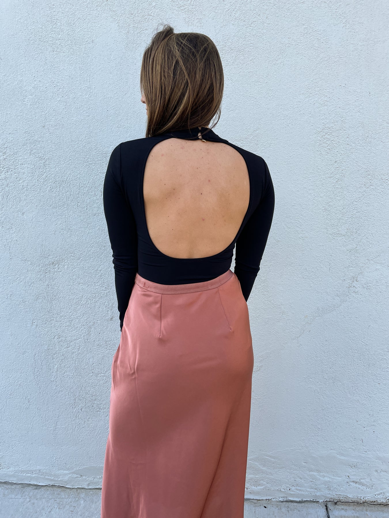 This is a next level body suit! Aside from the great fit, it has a surprise open back to make it a little extra sexy. So versatile, style it with a skirt, dressy pants, or with a pair of jeans. Model is wearing a medium.