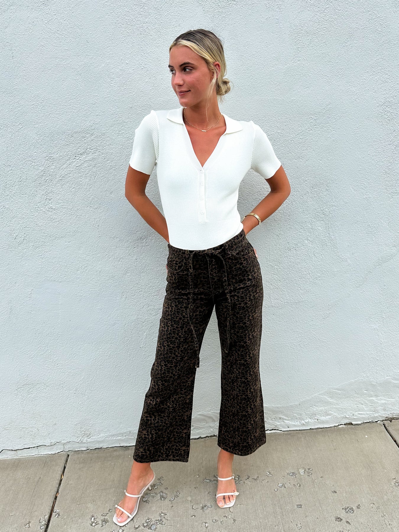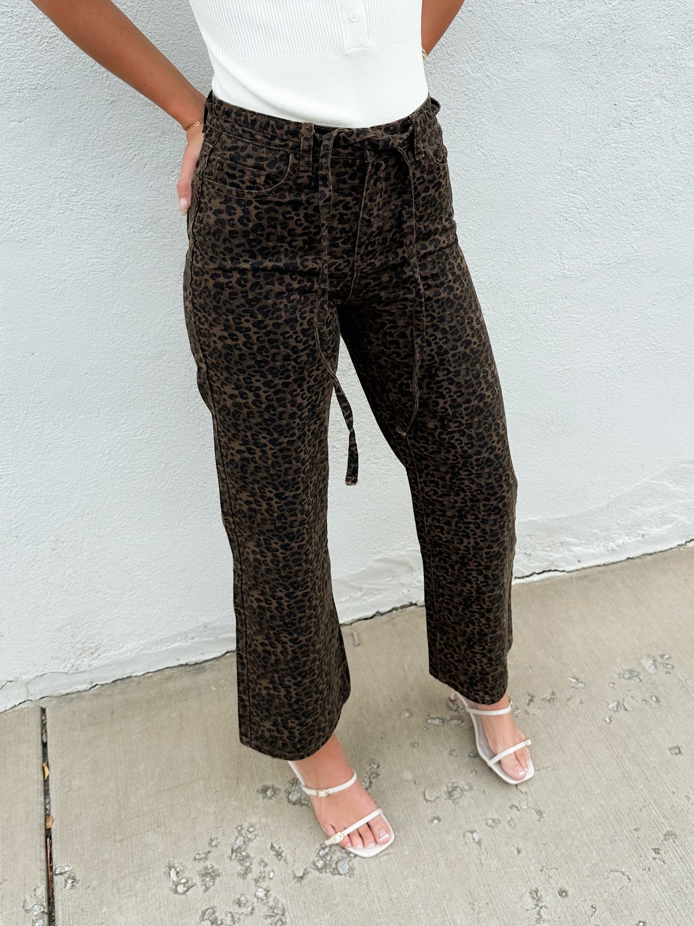 Cheetah print and denim are a fabulous combination. Slightly cropped with a removable tie belt, these pants will elevate your denim game.
