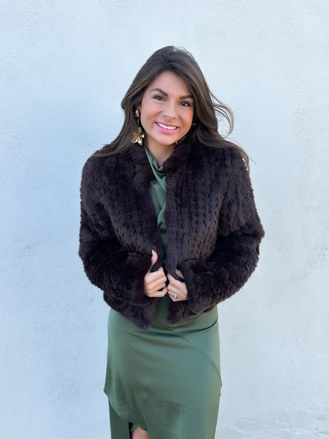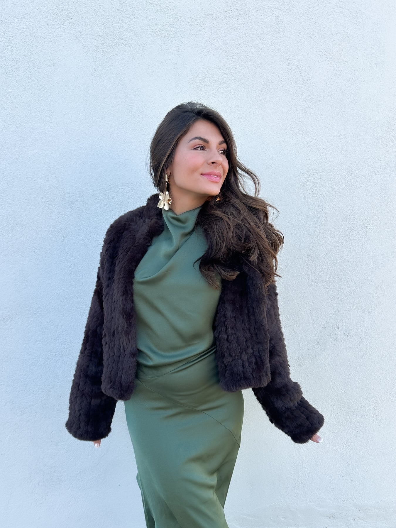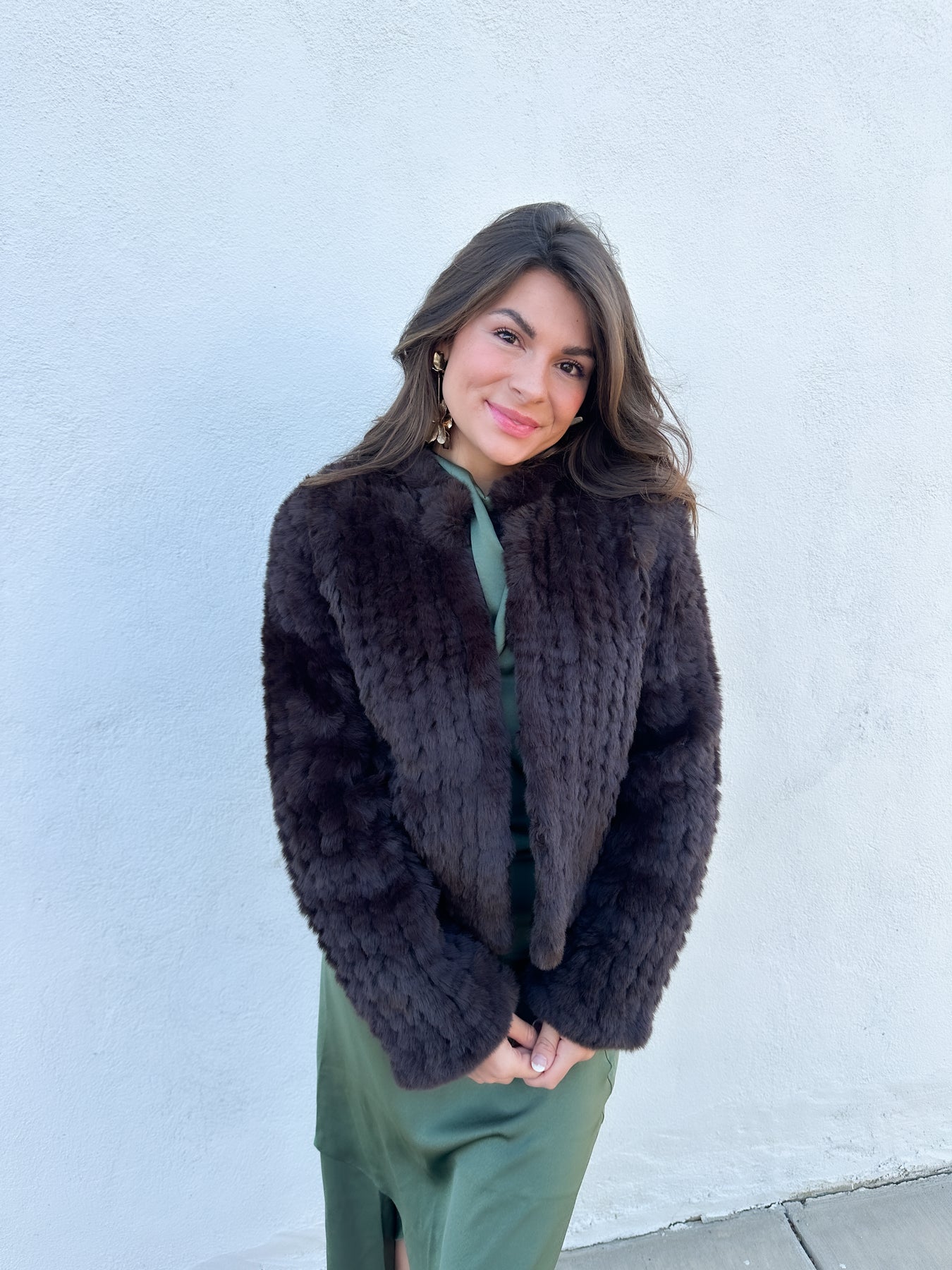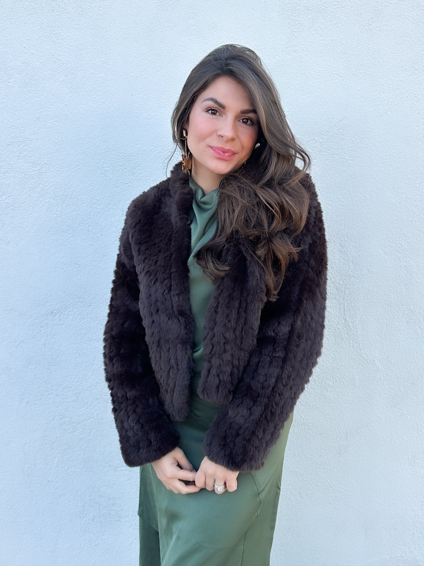 If you love a fur coat, but need a less expensive option, this gem is the perfect compromise. High collar and hidden hook closure makes this faux fur jacket a classic piece that will never go out of style.